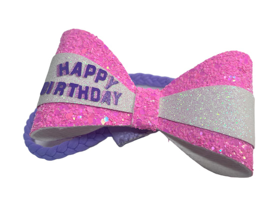 Happy Brirthday Chic Hairbows - Purple Glitter